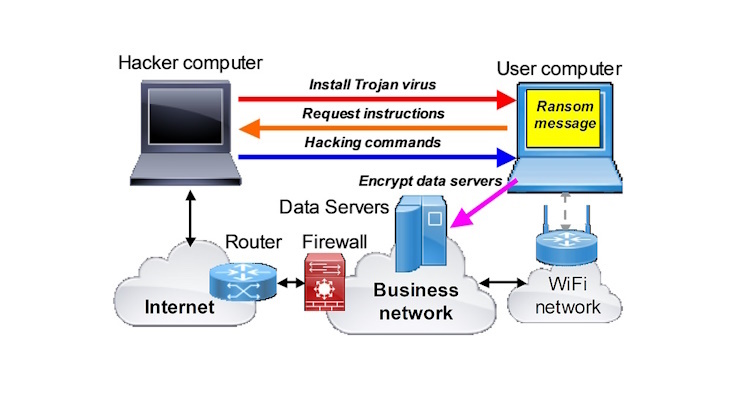 Steps of a Trojan virus ransomware attack: see the following diagram: